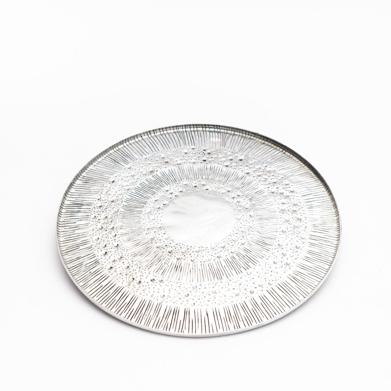 The Roma Tray holds feelings not just patterns. Its surface is marked by soft, repeated impressions formed by hand, like echoes pressed into metal.